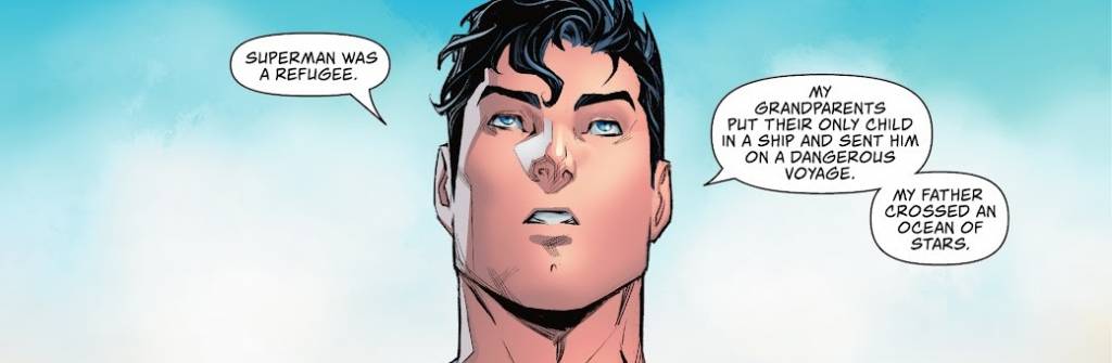 Comme celà fait deux jours que je lis tout et n’importe quoi au sujet de Superman: Son of Kal-El, j’en profite pour vous dire que cette nouvelle série, lancée fin juillet aux USA, raconte les aventures du rejeton de Superman et Lois Lane. Scénarisé par Tom Taylor (All-New Wolverine) et dessiné par John Simms, le nouveau titre Superman ramène le concept vers ce qu’il était aux origines, c’est à dire un personnage qui privilégie ce qui est juste et moral par opposition aux règles et à la loi. Ainsi en quelques épisodes on le voit lutter contre les incendies géants typiques de l’Amérique, contre les tueries de masse dans les campus mais aussi prendre parti pour des migrants (Superman lui-même était un migrant), contre les pouvoirs publics ou rencontrer un journaliste activiste. Ce qui finalement est très naturellement raccord avec le Superman de 1938, sans se contenter de « refaire » à l’identique. De quoi, forcément, faire hurler à la mort certaines personnes… qui ne lisent de toute façon pas Superman en temps normal.