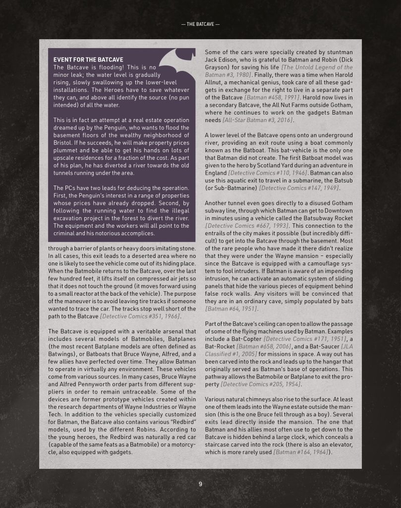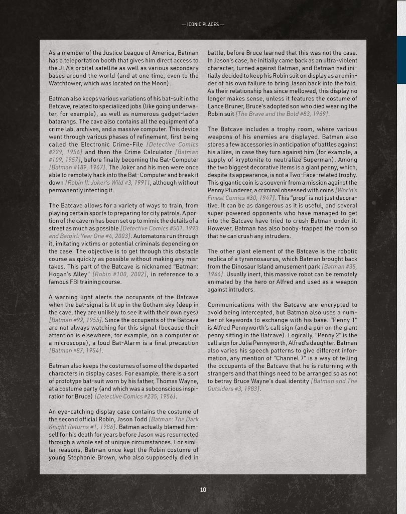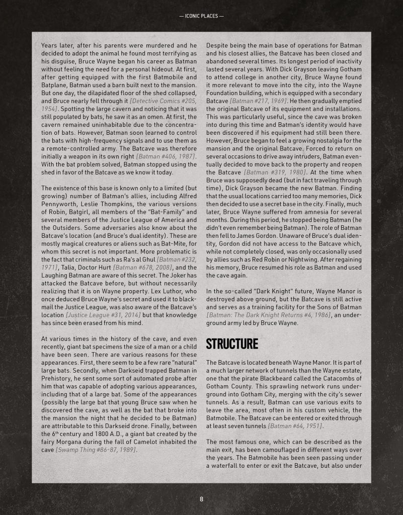 Ce samedi, jour officiel du Batman Day (réjouissances organisées par Warner et DC Comics autour de Batman), l’éditeur Monolith a levé le voile entre autres choses sur le Guide de Gotham City qui accompagnera le futur jeu Batman: The Gotham City Chronicles. Ce Guide, co-écrit par Alex Nikolavitch et moi-même regroupe des descriptions très détaillées (détails sur les structures, leur configuration et leur histoire) après avoir lu 83 ans d’aventures de Batman (et de ses nombreux alliés).