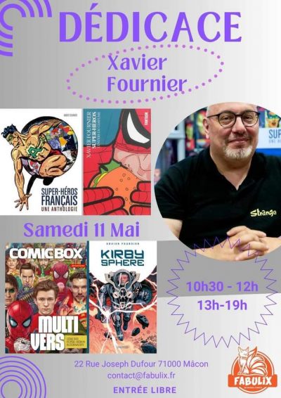 Ce samedi 11 mai 2024, je suis en dédicace de mes ouvrages à Mâcon (et je ne suis pas seul, avec plein d’autres auteurs et même des comédiens de doublage), chez Fabulix, toute nouvelle librairie qui vient d’ouvrir. Une librairie de genre qui ouvre, par les temps actuels, c’est une denrée rare alors si vous êtes dans le coin, n’hésitez pas à venir faire un tour pour découvrir ce nouveau lieu (et les pauvres hères qui se contentent de signer des livres alors que la responsable de Fabulix se tape tout le boulot). Si vous êtes dans le secteur de Mâcon et que vous aimez lire…